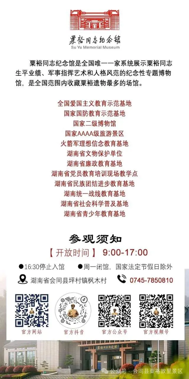 粟裕同志纪念馆春节假期对外开放公告