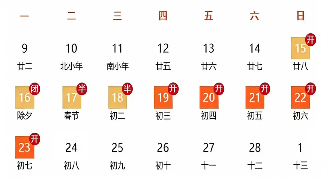 3.2月17日(初一)、2月18日(初二) 实行半天开放,开放时间10:00-14:00,13:30停止入馆;